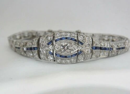 Stunning Art Deco 3ctw Fine Ood Cut Diamond Sapphire Platinum Bracelet 20.7grams