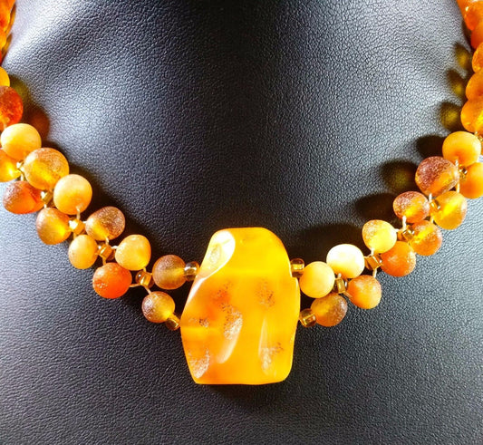 Antique Baltic Egg Yolk Amber Large Beads Genuine Natural Necklace