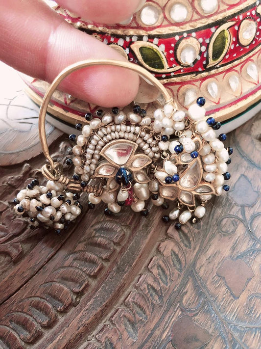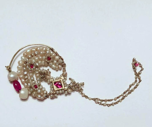 Handmade Early Nineteens Gold Basra Pearl Nath ( Nose Pin )