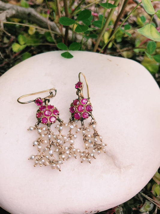 Handmade Vintage Rare Real Burmese Rubies & Natural Basra Earrings