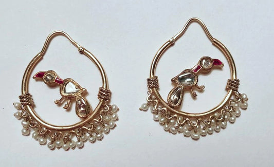 Handmade Early Nineteens Gold Basra Pearl Peacock Motifs Nath ( Nose Pin )