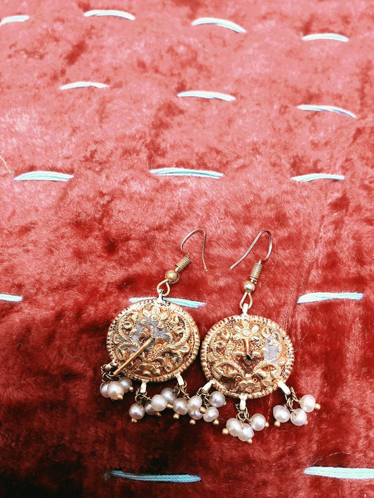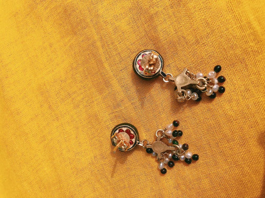 Vintage Navgraha Gold Precious Stones & Natural Basra Pearl Earings