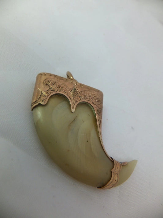 Fine 9ct/9k Rose Gold Large & heavy Edwardian Inscribed claw Pendant 375