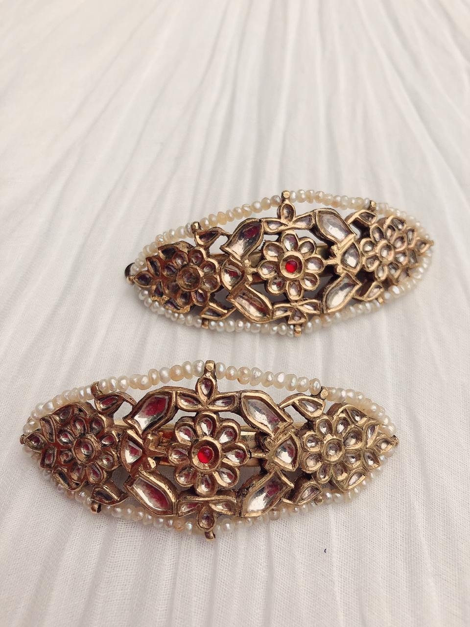 Antique Gold Natural Basra Pearl Hair Clips from a collector's vault.