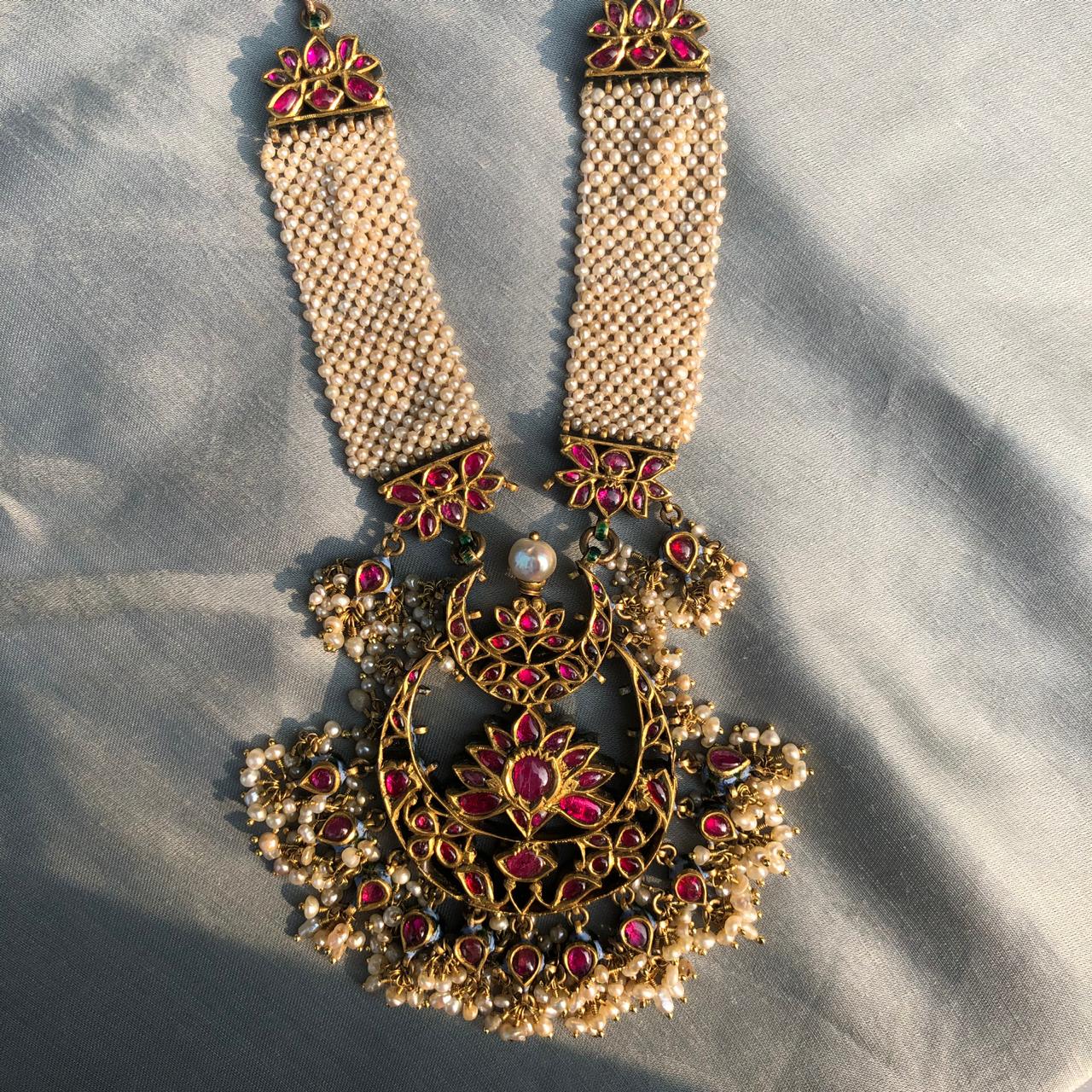 Vintage antique Huge 20k Gold Diamond Ruby Polki Kundan Moti Work Necklace
