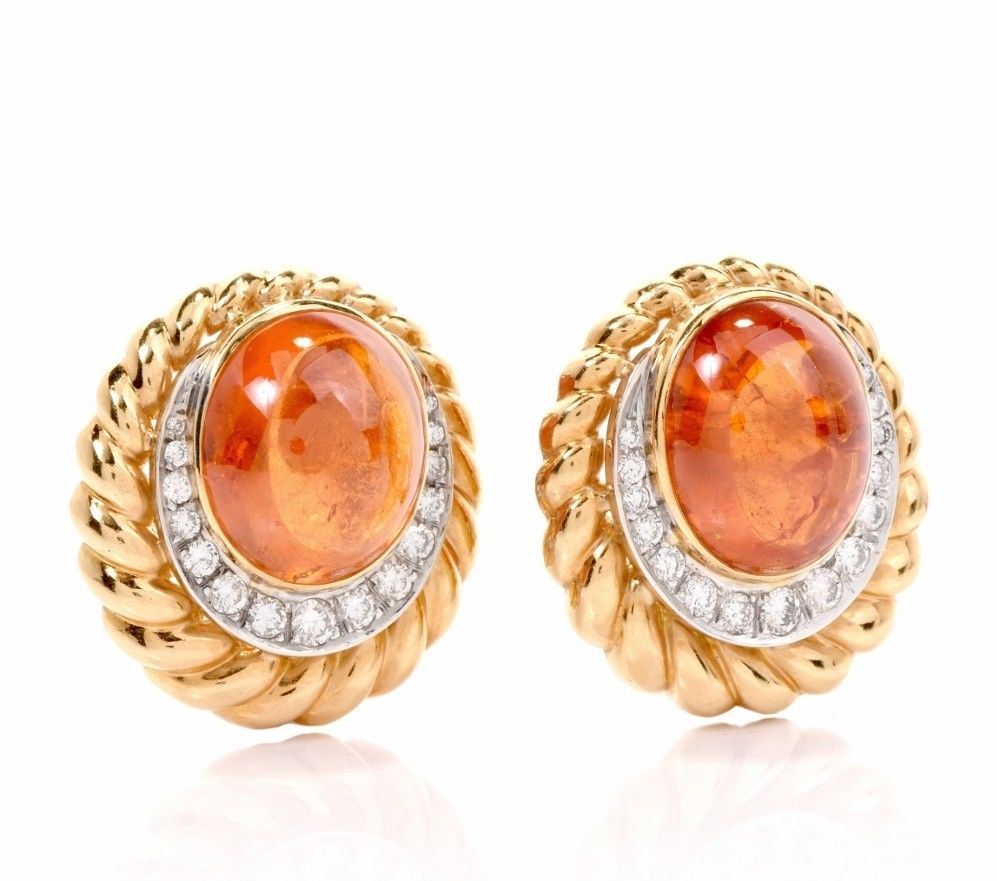 Estate Diamond 55.45ct Spessartite Garnet 18k Gold Large Earrings